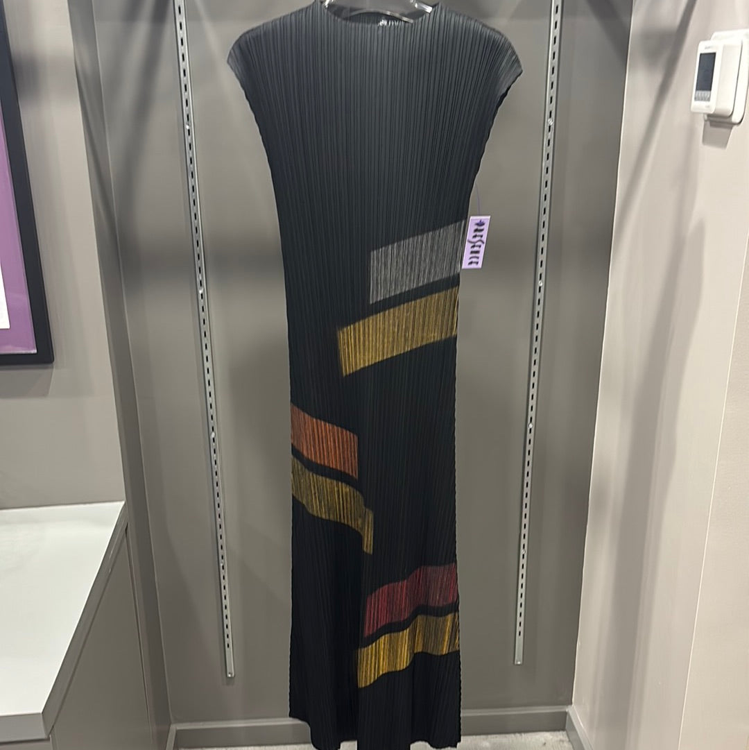 BLACK AND GOLD METALLIC CINCHED DRESS