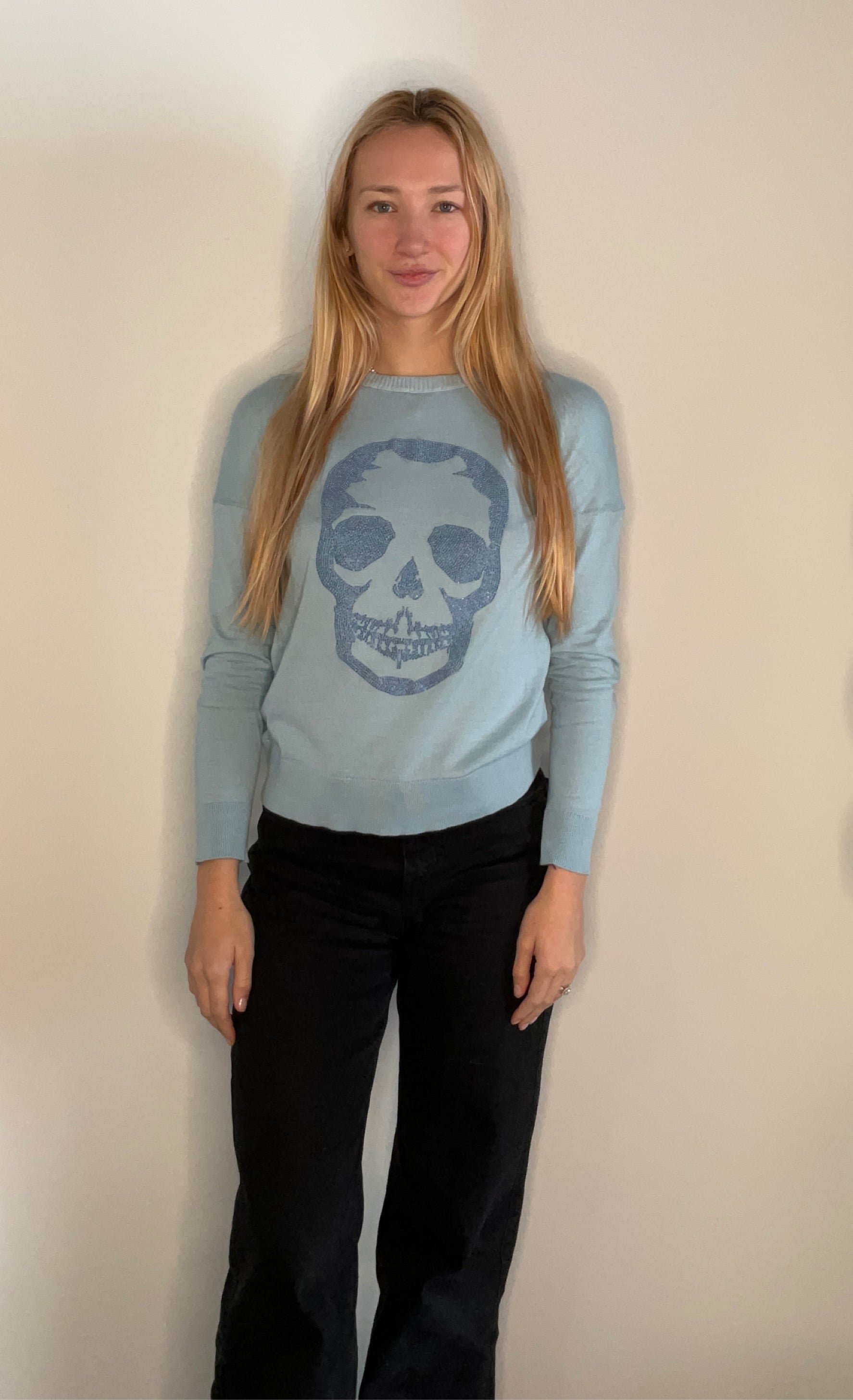 Zadig&Voltaire light blue skull long sleeve. 100% cotton.