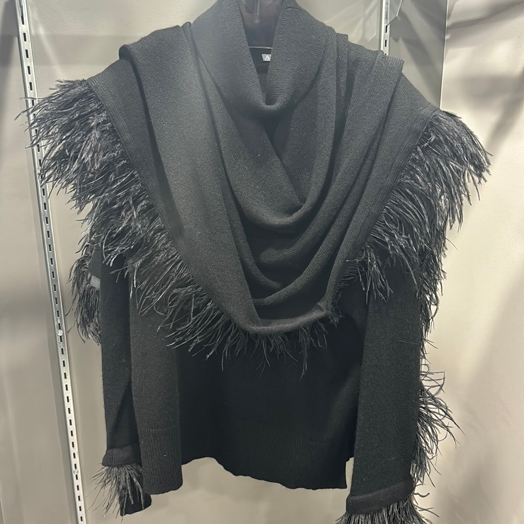 CASHMERE AND FEATHER TRIMMED PONCHO