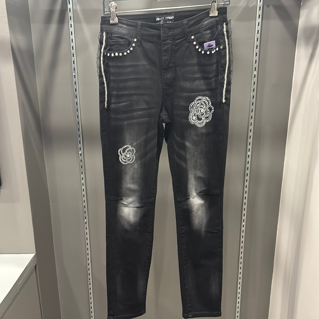 CHARCOAL LACE EMBELLISHED JEAN