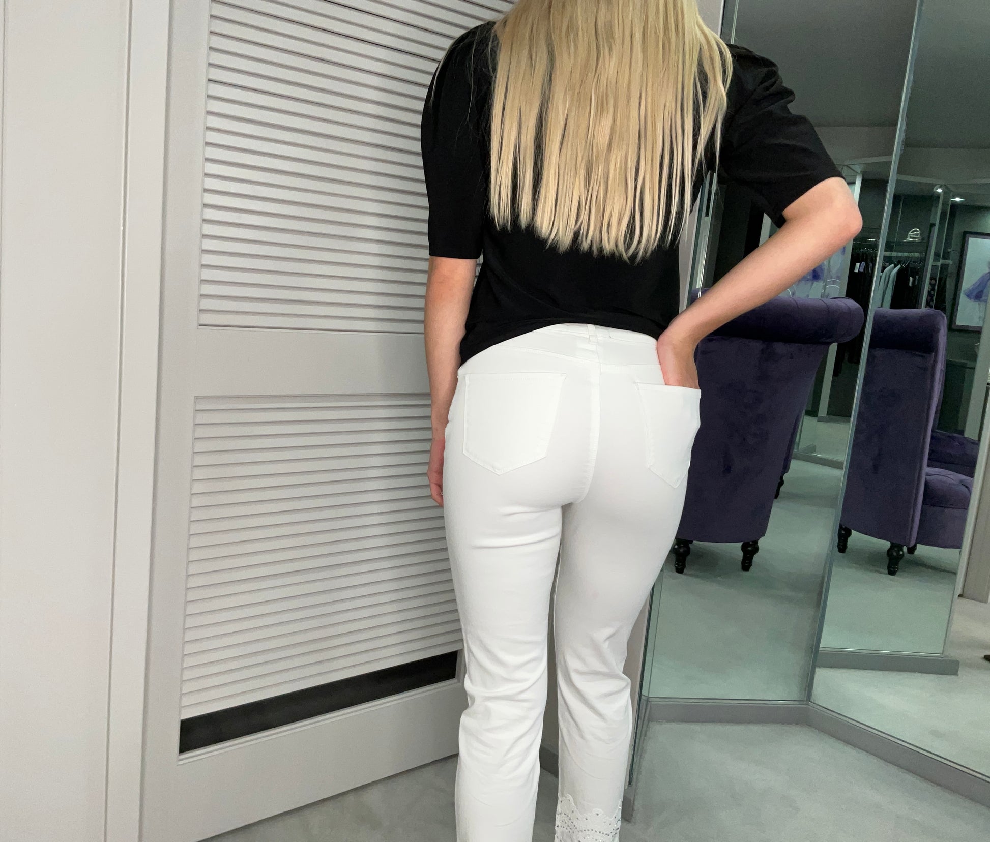 CHUNKY LACE EMBROIDERED WHITE JEANS