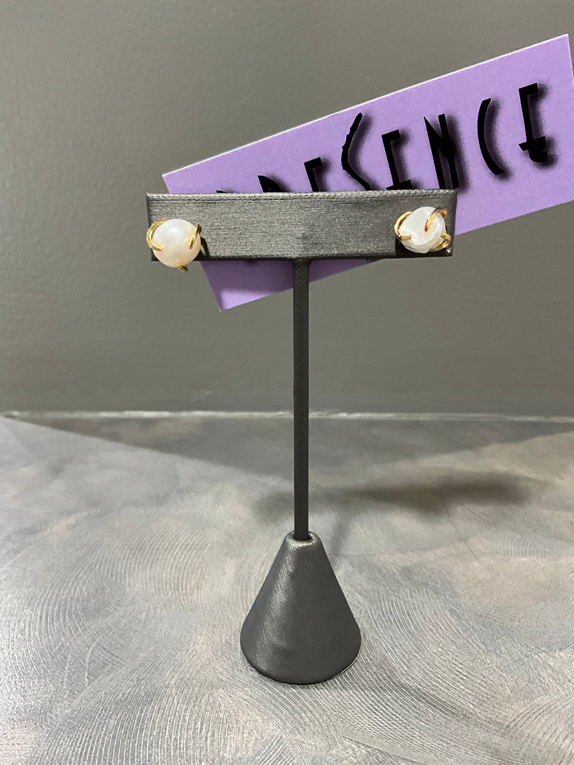 GOLD TONE PEARL BASKET STUD EARRINGS