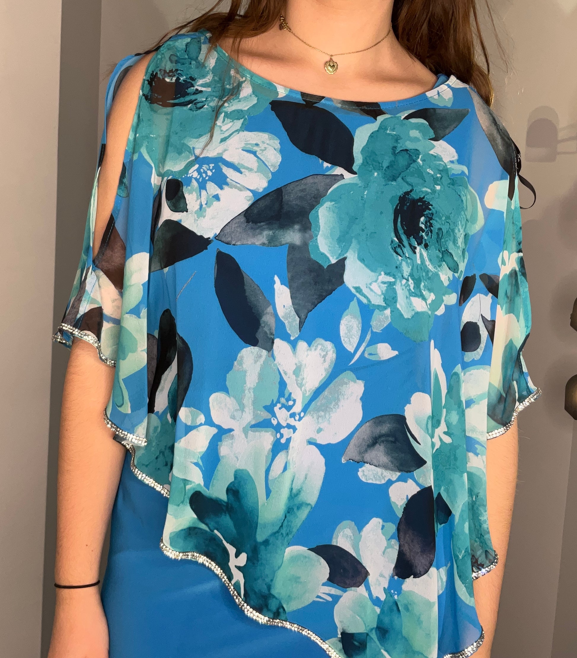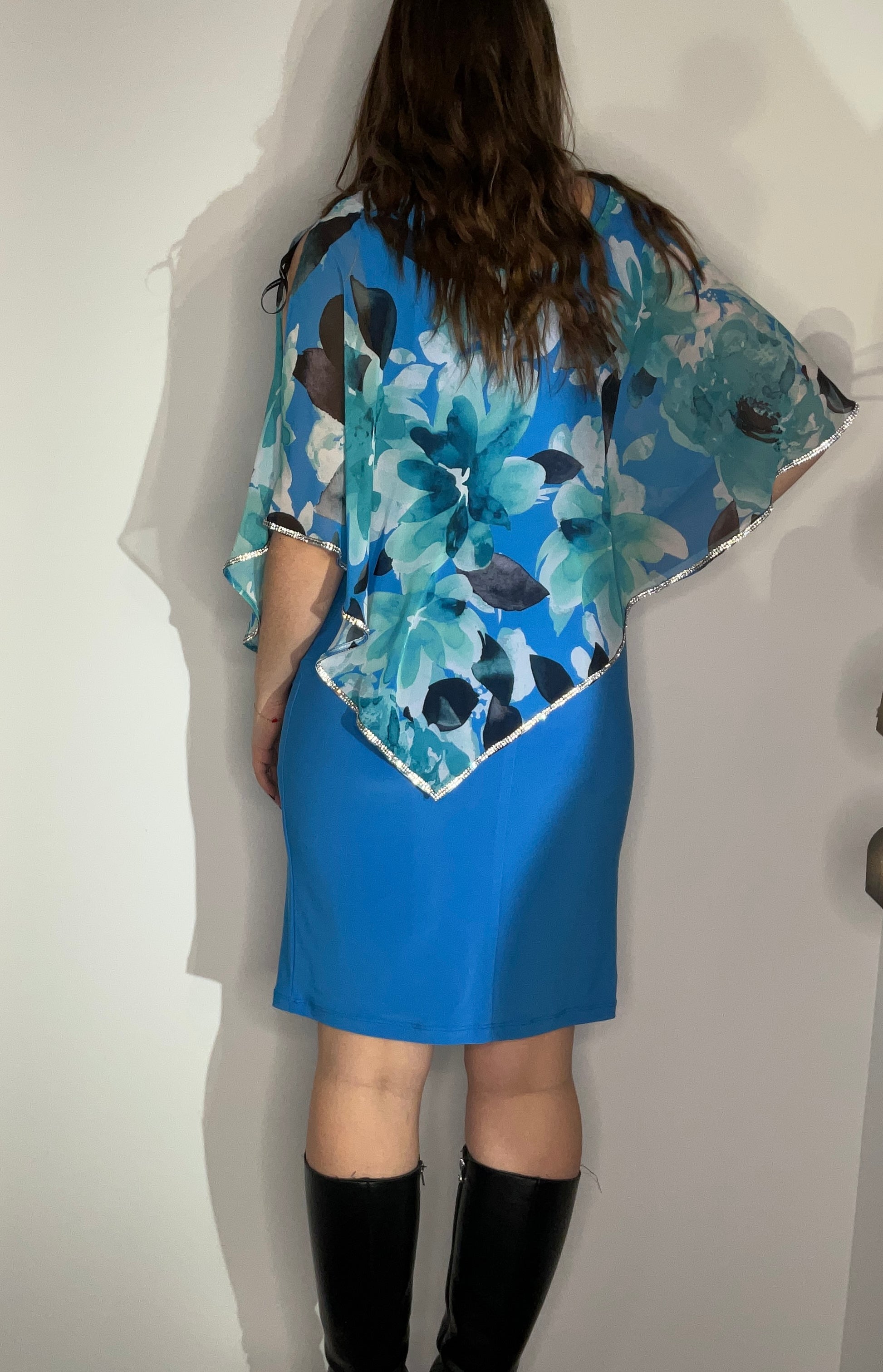 OVERLAY CRYSTAL TRIM OCEAN BLUE DRESS