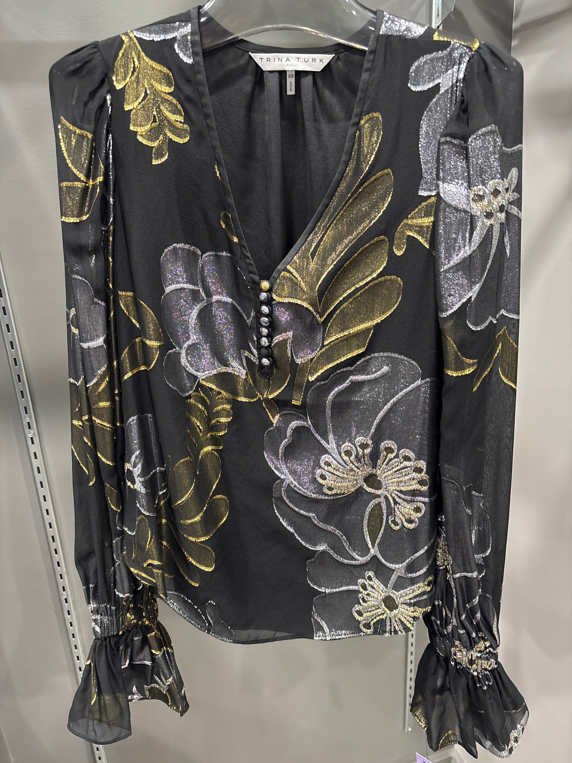 SILK METALLIC FLORAL BLOUSE