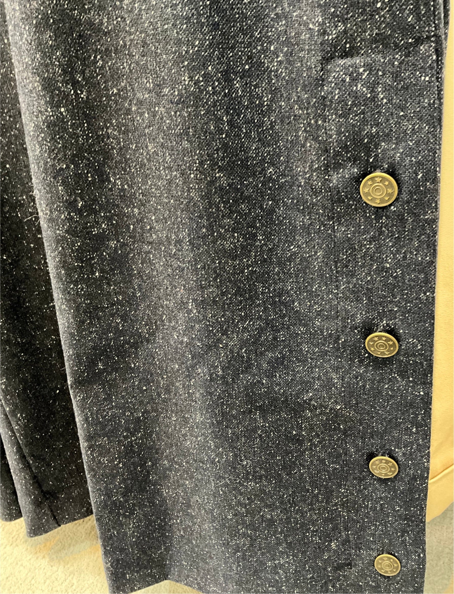 model is wearing size 8. 42% wool. 37% polyester. 15% acrilca. 5% silk.